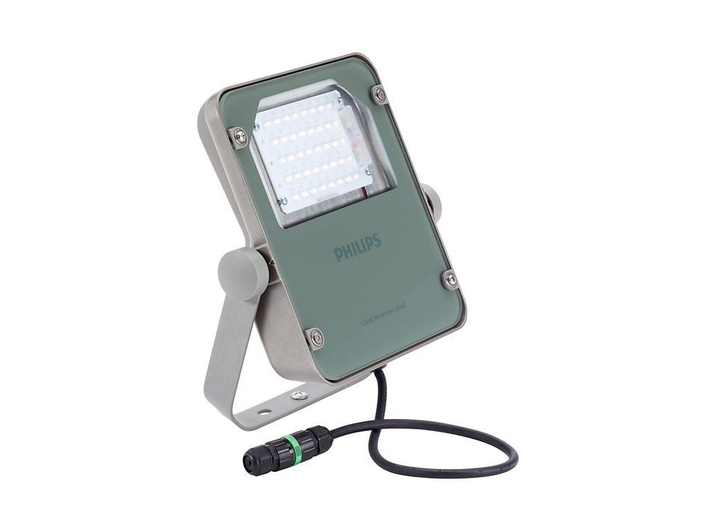 Moderní LED reflektor Tempo výkonné úsporné funkční řady Philips CoreLine v nejmenší variantě o celkovém příkonu 38 W s asymetrickou optikou účinně nahrazuje konvenční technologie se snadnou instalací a dostatečným světelným výkonem při úspoře elektrické energie. Pro jeho výrobu byl použit hliník litý pod tlakem s šedou vnější povrchovou úpravou, skleněný optický kryt čočky je chráněn akrylátovým krytem. Hliníkový držák je možné instalovat na stěnu, strop nebo na zem na standardně hořlavé povrchy (F) s možným nastavením toku světla. Odolává teplotám od -40°C až do +35°C. Krytí IP65 značí prachotěsnost a voděodolnost proti silně stříkající vodě. Mechanická odolnost s vysokou hodnotou IK08 odolává nárazům až o síle 5 J. 40 integrovaných úsporných vysoce výkonných LED diod se silným světelným tokem 4200 lm vydávají neutrální jasné bílé světlo s teplotou chromatičnosti 4000K s extrémně dlouhou životností až 75.000 h. Jsou součástí svítidla bez možnosti výměny. Philips poskytuje prodlouženou záruku 5 let. Předřadník PSU je součástí svítidla. Přívodní kabel s konektorem pro připojení má délku 0,5 m.