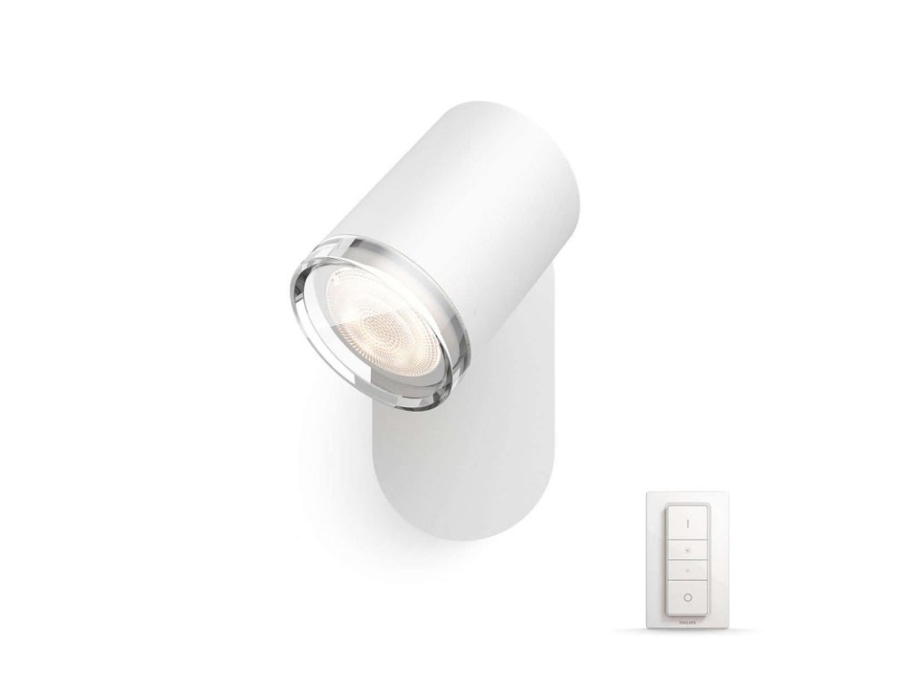 Nástěnné bodové koupelnové svítidlo Adore z kolekce smart osvětlení Philips Hue v jednoduché variantě v bílé barvě je dodáváno s dálkovým ovladačem Hue Dimmer Switch pro regulaci intenzity a teploty bílého světla v rozsahu 2200K - 6500K. Můžete si tak snadno upravovat světlo v koupelně podle denní potřeby, ať už chcete relaxovat na konci dne, nebo potřebujete získat energii po probuzení anebo si ve správném světle nalíčit nebo oholit tvář. Svítidlo je osazeno paticí GU10 pro úsporný LED zdroj o maximálním příkonu 1 x 5,5 W. Hue LED žárovka 5,5 W White Ambiance, která odpovídá svitu klasické 25W žárovky, má extrémně dlouhou životnost až 15.000 h při až 50.000 spínacích cyklech a je dodávána v balení. Pokud ji připojíte přes můstek Philips Hue Bridge (není součástí balení), budete moci i toto světlo ovládat přes mobilní aplikace odkudkoli. Krytí IP44 značí voděodolnost a vhodnost pro použití ve vlhkém prostředí koupelny.