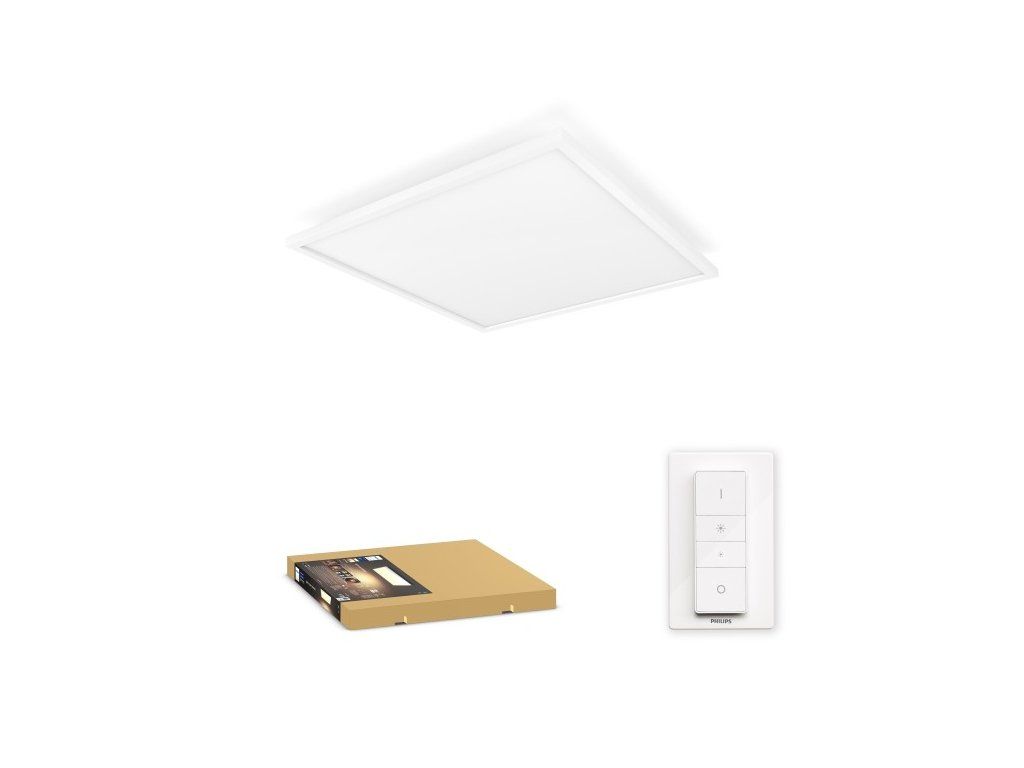 Velký stropní čtvercový LED panel Aurelle v provedení o velikosti 60 cm x 60 cm z kolekce smart domácího osvětlení Philips Hue vám umožní přizpůsobit světlo vašeho domova podle vaší nálady, potřeb a denních činností. Má integrovaný úsporný LED zdroj Hue White Ambiance s extrémně dlouhou životností až 25.000 h. Je dodáván s dálkovým ovladačem se stmívačem Philips Hue Dimmer Switch, pomocí kterého můžete regulovat intenzitu svitu a měnit barvu bílého světla ve čtyřech schématech v rozsahu od žárovkového hřejivého bílého pro relaxaci 2200K, přes teplé bílé na čtení 2700K, po jasné denní bílé pro koncentraci a soustředění 4000K až po energické chladné bílé světlo 6500K. Dálkovým ovladačem můžete ovládat až 10 Hue žárovek a LED zdrojů, které máte doma. Pokud připojíte LED panel přes můstek Hue Bridge (není dodováván v balení), budete moci i toto svítidlo ovládat odkudkoli přes mobilní aplikace ve vašem chytrém zařízení. Svítidlo je vyrobeno ve štíhlém minimalistickém designu z kvalitního tlakově litého hliníku s bílou vnější povrchovou úpravou v kombinaci s difuzorem z mléčného odolného plastu. Světelný zdroj je součástí svítidla bez možnosti výměny, LED panel je tak zcela bezúdržbový a je ho možné okamžitě po zapojení používat se všemi jeho výjimečnými funkcemi. Tento stropní přisazený LED panel najde široké použití ve větších interiérech v obývacích prostorách nebo kancelářích.