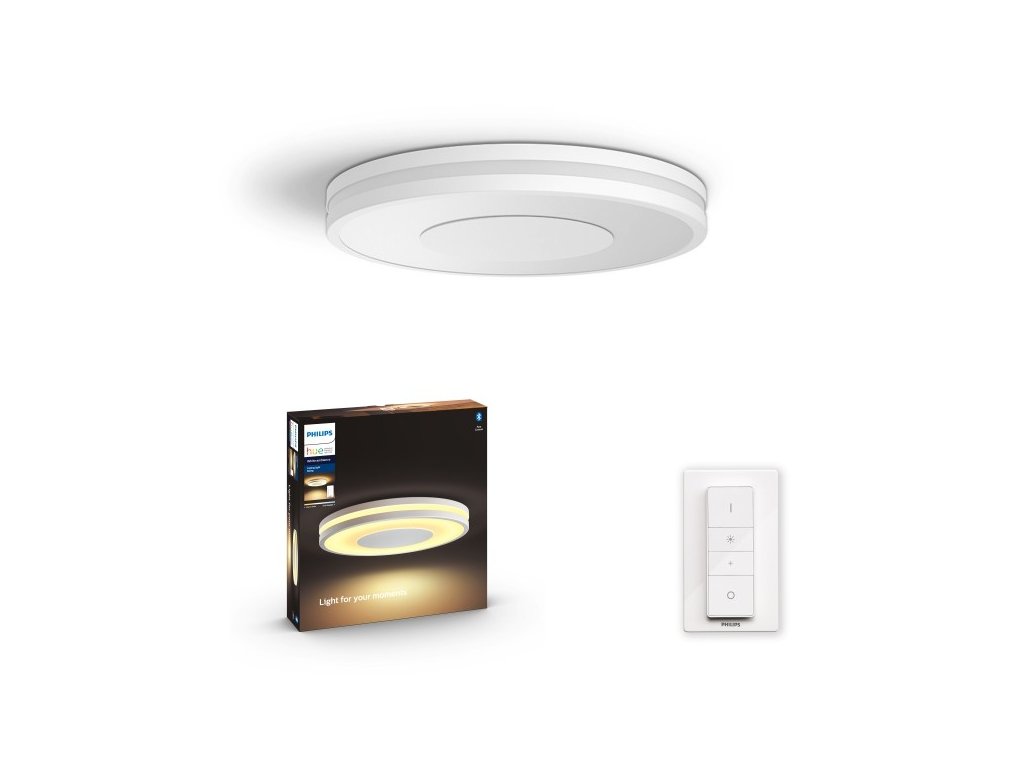 Stropní přisazené svítidlo Philips Hue Being v bílém provedení se hodí do moderně zařízených interiérů, dokonale osvítí Váš obývací pokoj, ložnici či kuchyňský kout. Jeho kulatá základna a rám svítidla o průměru 34,8 cm jsou vyrobeny z kvalitního kovu s matně černou povrchovou úpravou. Difuzor je z odolného bílého plastu a skrývá integrovaný LED zdroj s příkonem 32W a inteligentní technologií Hue White Ambiance, díky které je možné nastavit barvu světla od 2200K (teplé žárovkové světlo) do 6500K (studené bílé světlo). Celkový výkon svítidla je 2400 lm. Svítidlo je nově možné ovládat pomocí technologie Bluetooth. Stačí si stáhnout Bluetooth aplikaci, do které je možné přidat až 10 chytrých světel a ovládat je jednoduchým stisknutím tlačítka na Vašem mobilním zařízení. Součástí balení je rovněž dálkový ovladač Dimmer Switch. Výhodou tohoto integrovaného zdroje je dlouhá doba životnosti až 25 000 hodin.