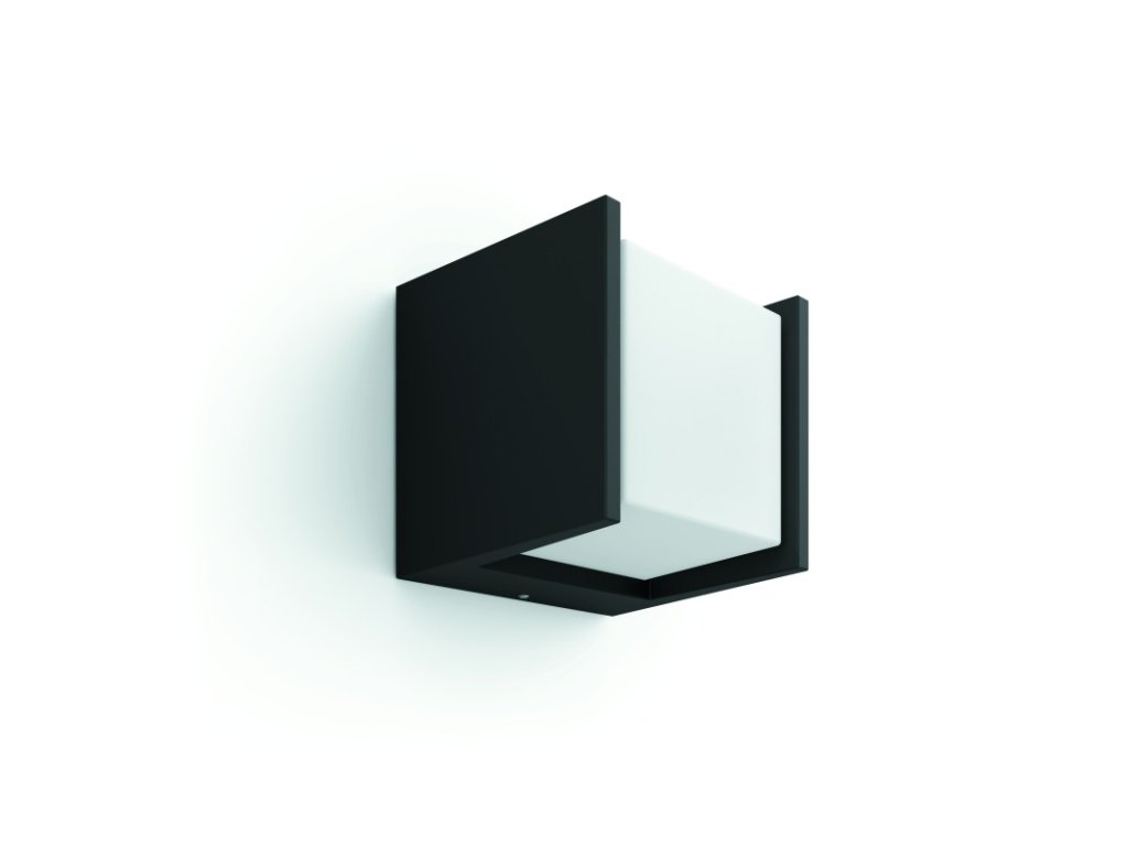 Venkovní nástěnné LED svítidlo Fuzo z kolekce zahradního chytrého osvětlení Philips Hue má jednoduchý módní styl a integrovaný LED zdroj Hue White 2700K s příjemným rozptýleným teplým bílým svitem a s možností garantovaného jemného ztlumení pomocí aplikace z chytrého mobilního zařízení po připojení přes Bridge, který není dodáván se svítidlem. Svítidlo je vyrobeno z tlakově odlévaného hliníku s vnější černou povrchovou úpravou, stínidlo je z mléčného odolného plastu. Krytí IP44 značí voděodolnost a vhodnost pro použití ve vlhkém venkovním prostředí.