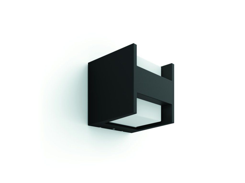 Venkovní nástěnné LED svítidlo Fuzo z kolekce zahradního smart osvětlení Philips Hue má moderní design a integrovaný zdroj LED Hue White 2700K s dvousměrným svitem a s možností garantovaného jemného ztlumení pomocí aplikace z chytrého mobilního zařízení po připojení přes Bridge, který není dodáván se svítidlem. Svítidlo je vyrobeno z tlakově litého hliníku s vnější černou povrchovou úpravou, stínidlo je z mléčného odolného plastu. Krytí IP44 označuje voděodolnost a vhodnost pro použití ve vlhkém venkovním prostředí.