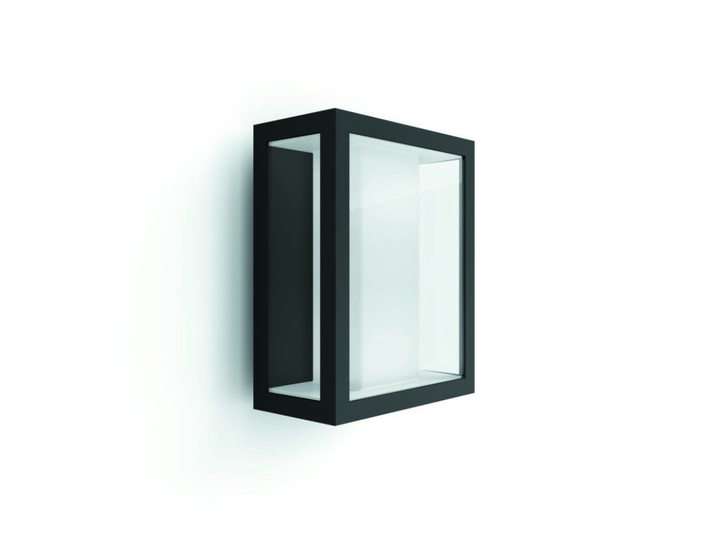 Nástěnné venkovní svítidlo Philips Hue Impress v jednoduchém módním stylu výborně a chytře rozsvítí vaše venkovní prostory. Pro jeho výrobu byl použit kvalitní litý hliník v černé barvě v kombinaci s čirým sklem. Světlo zajišťuje integrovaný úsporný vysoce výkonný LED zdroj Hue White and Color Ambiance s až 16 milióny odstíny barev ve volitelných intenzitách. Teplota bílého svitu je nastavitelná ve 4 schématech od 2200K (žárovkové teplé bílé světlo pro odpočinek a relaxaci), přes 2700K (teplé bílé světlo vhodné na čtení), po 4000K (jasné denní světlo simulující polední svit pro práci a soustředění), až po 6500K (studené bílé světlo navozující energii). Anebo je možné nastavovat barevné světlo podle nálady. Vyžaduje připojení přes můstek Hue Bridge (není dodáván v balení) pro možnost ovládat svítidlo odkudkoli přes mobilní aplikace. Životnost zdroje je extrémně dlouhá až 25.000 hodin. Krytí IP44 označuje voděodolnost a vhodnost pro použití ve vlhkém venkovním prostředí.