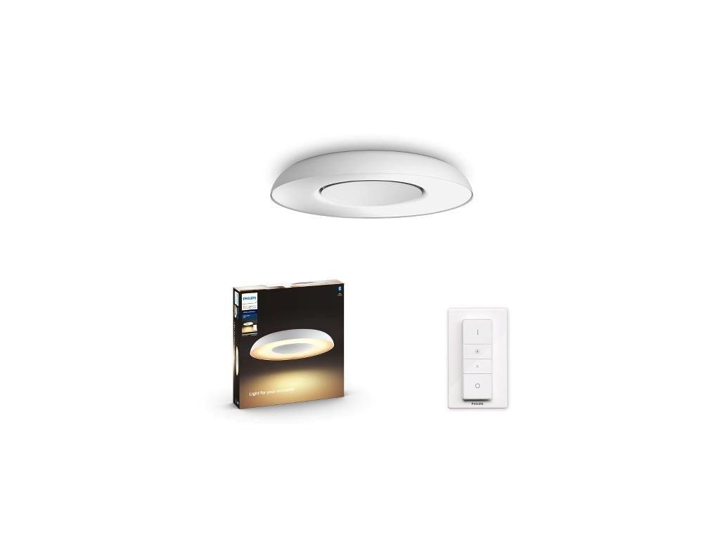 Stropní přisazené svítidlo Philips Hue Still v bílém provedení se hodí do moderně zařízených interiérů, dokonale osvítí Váš obývací pokoj, ložnici či kuchyňský kout. Jeho kulatá základna a rám svítidla o průměru 39,1 cm jsou vyrobeny z kvalitního kovu s matně bílou povrchovou úpravou. Difuzor je z odolného bílého plastu a skrývá integrovaný LED zdroj s příkonem 32W a inteligentní technologií Hue White Ambiance, díky které je možné nastavit barvu světla od 2200K (teplé žárovkové světlo) do 6500K (studené bílé světlo). Celkový výkon svítidla je 2400 lm. Svítidlo je nově možné ovládat pomocí technologie Bluetooth. Stačí si stáhnout Bluetooth aplikaci, do které je možné přidat až 10 chytrých světel a ovládat je jednoduchým stisknutím tlačítka na Vašem mobilním zařízení. Součástí balení je rovněž dálkový ovladač Dimmer Switch. Výhodou tohoto integrovaného zdroje je dlouhá doba životnosti až 25 000 hodin.