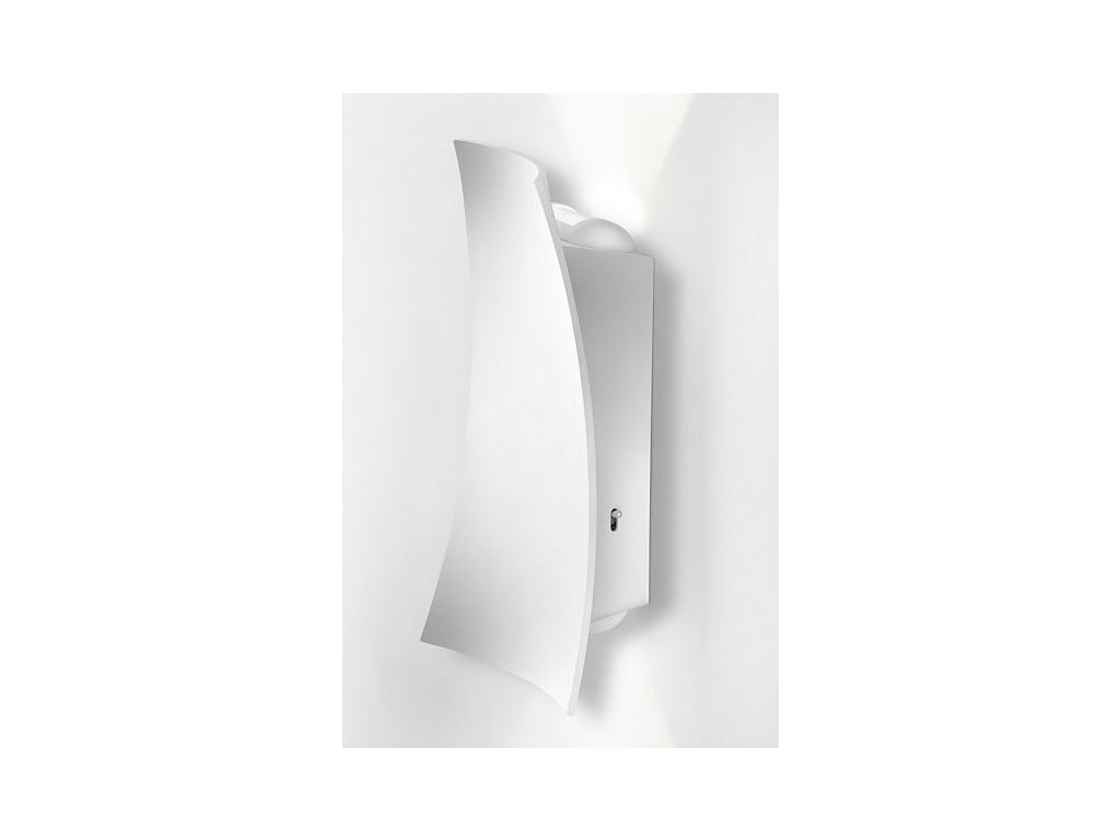 Nástěnné svítidlo. LED zdroje jsou nahoře i dole a osvěcují stěnu, velmi vhodné jako dekorační, doplňkové osvětlení.