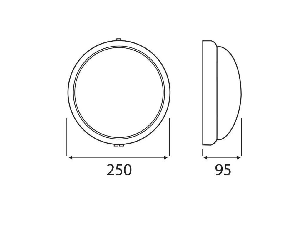 Svítidlo kruhového tvaru vyrobené z bílého plastu s polykarbonátovým čirým krytem a osazené keramickou objímkou E27. Po obvodě svítidla jsou tři kabelové vstupy pro snadnou průběžnou montáž.