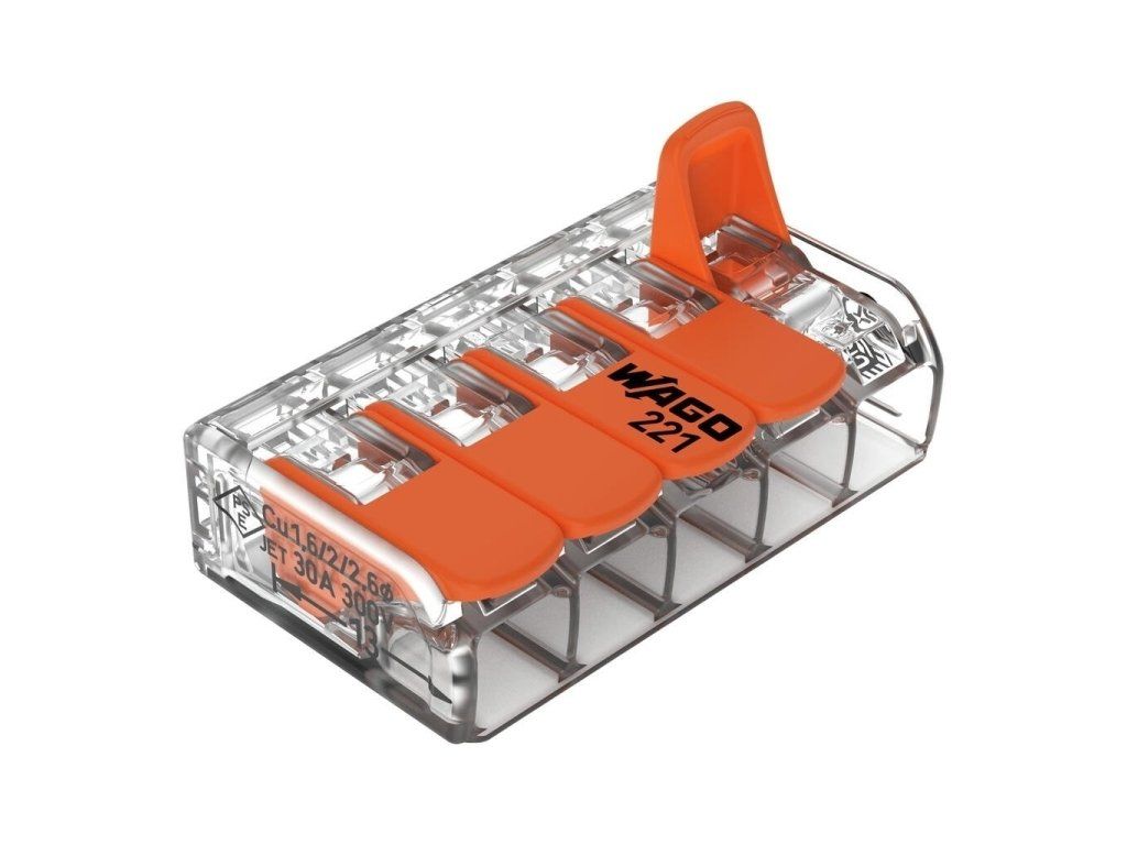 Wago svorka 221 5x6 s ovládací páčkou je určená pro všechny, kdo chtějí snadno spojit více vodičů o průřezu až 6 mm2. Kromě rychlé montáže vyniká i malými rozměry, oproti straším modelům je o 40 % menší. Spojovací svorka je průhledná, takže snadno poznáte, jestli je vodič správně zasunutý. Wago 221 je vhodná do prostředí s okolní teplotou až 60 °C, takže lze používat i pro osvětlení.Doplňkové parametry