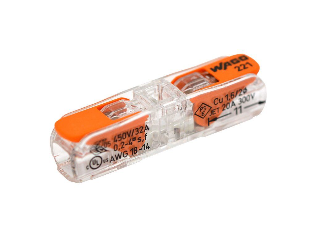 Spojovací WAGO svorka 221-2411 Inline s páčkou patří mezi vůbec nejoblíbenější svorky na trhu. Nabízí velmi jednoduché použití, jelikož je bezšroubová a kontakt zajistíte pružinou. Je také rozměrově velmi kompaktní a spojíte s ní vodiče s průřezem 0,2 až 4 mm².