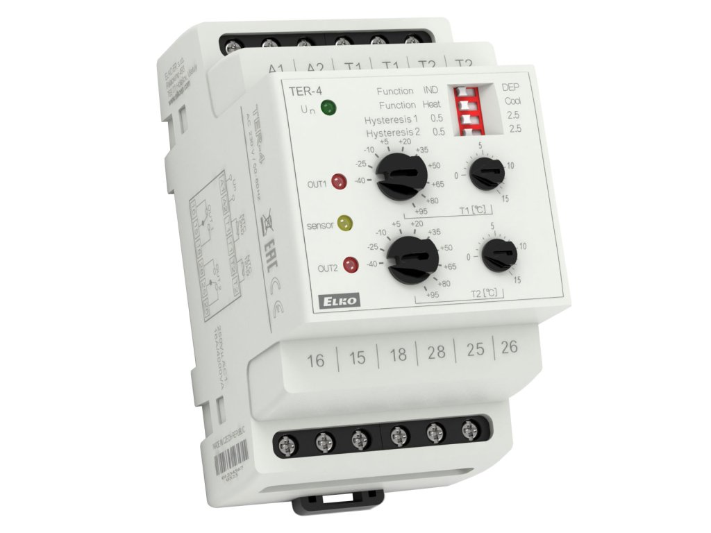 Dvojitý termostat TER-4 disponuje přepínačem teplotních rozsahů a jemným dostavením teploty (vysoká přesnost nastavení).