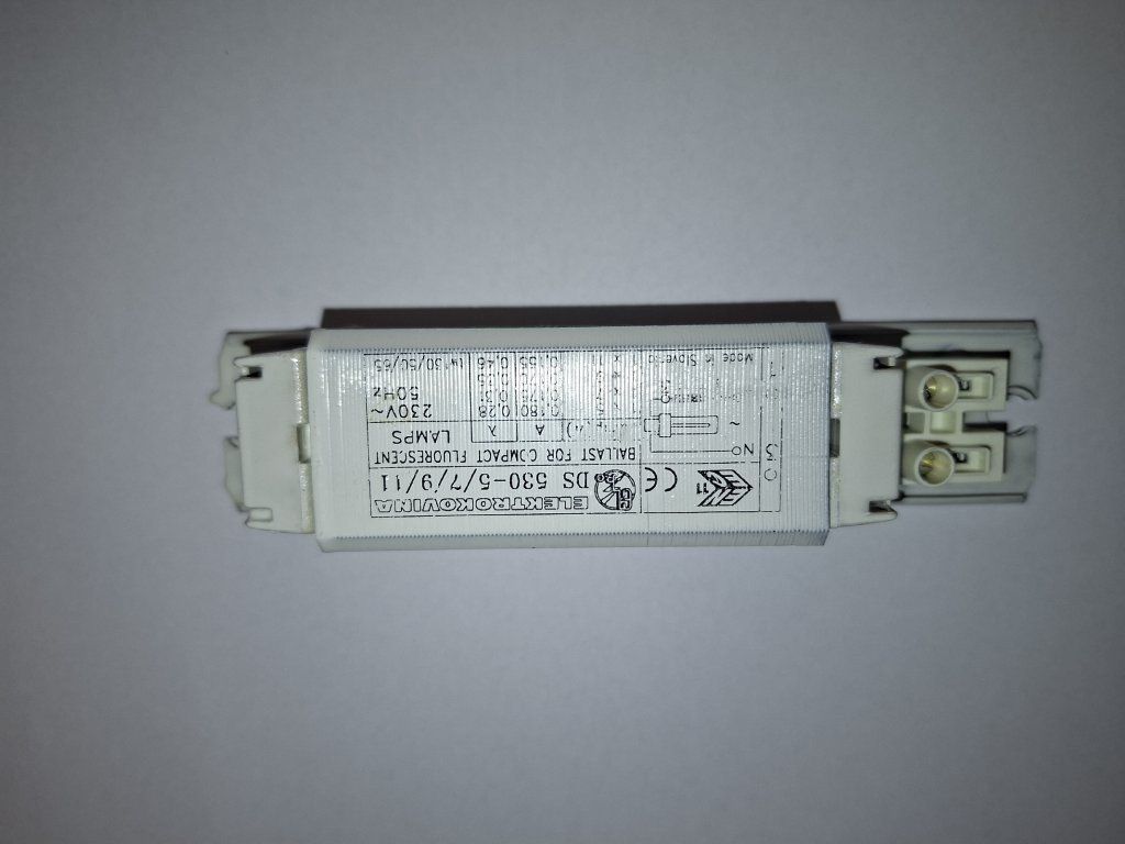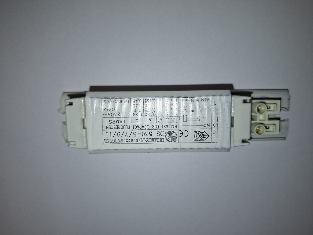 Tlumivka pro kompaktní zářivky G23 5-11W v úzkém provedení.Doplňkové parametry