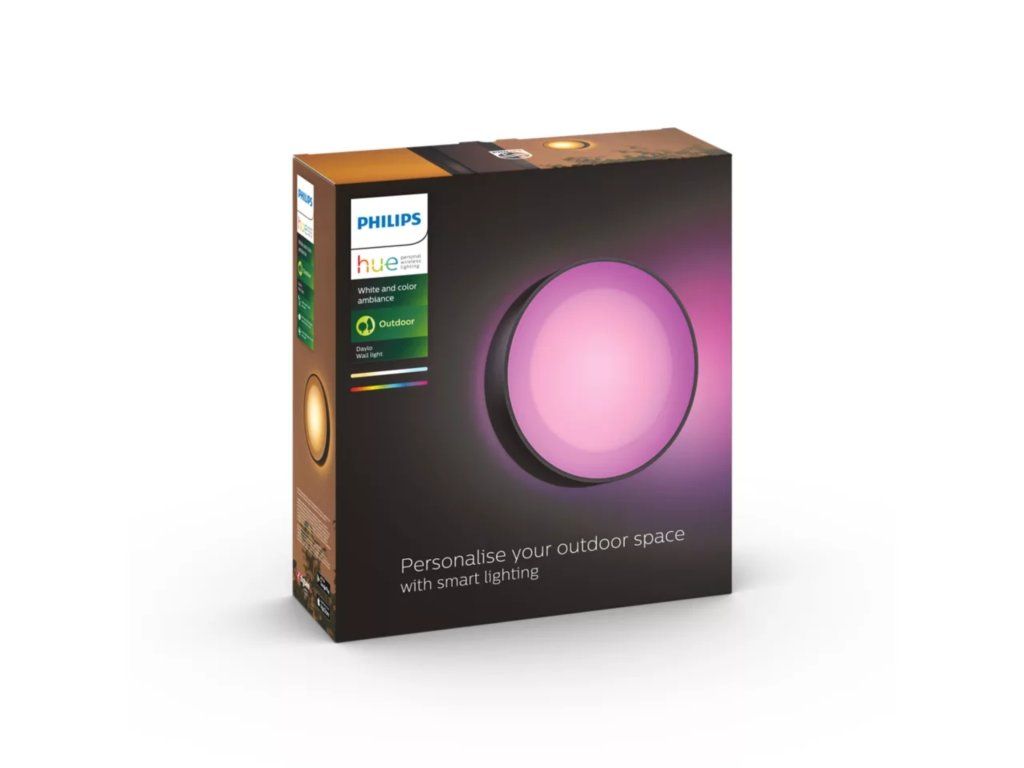 Venkovní nástěnné LED svítidlo Philips Hue Daylo kombinuje moderní design s pokročilou technologií chytrého osvětlení, které umožňuje přizpůsobit světelnou atmosféru exteriéru. Svítidlo je vybaveno výkonnými integrovanými LED diodami s možností nastavení barevného světla včetně bílé i více než 16 milionů barevných odstínů, což umožňuje vytvořit požadovanou náladu na terase, u vchodu nebo na zahradě. Součástí designu je kvalitní černé provedení a opalizovaný difuzor, který zajišťuje rovnoměrné rozptýlení světla.