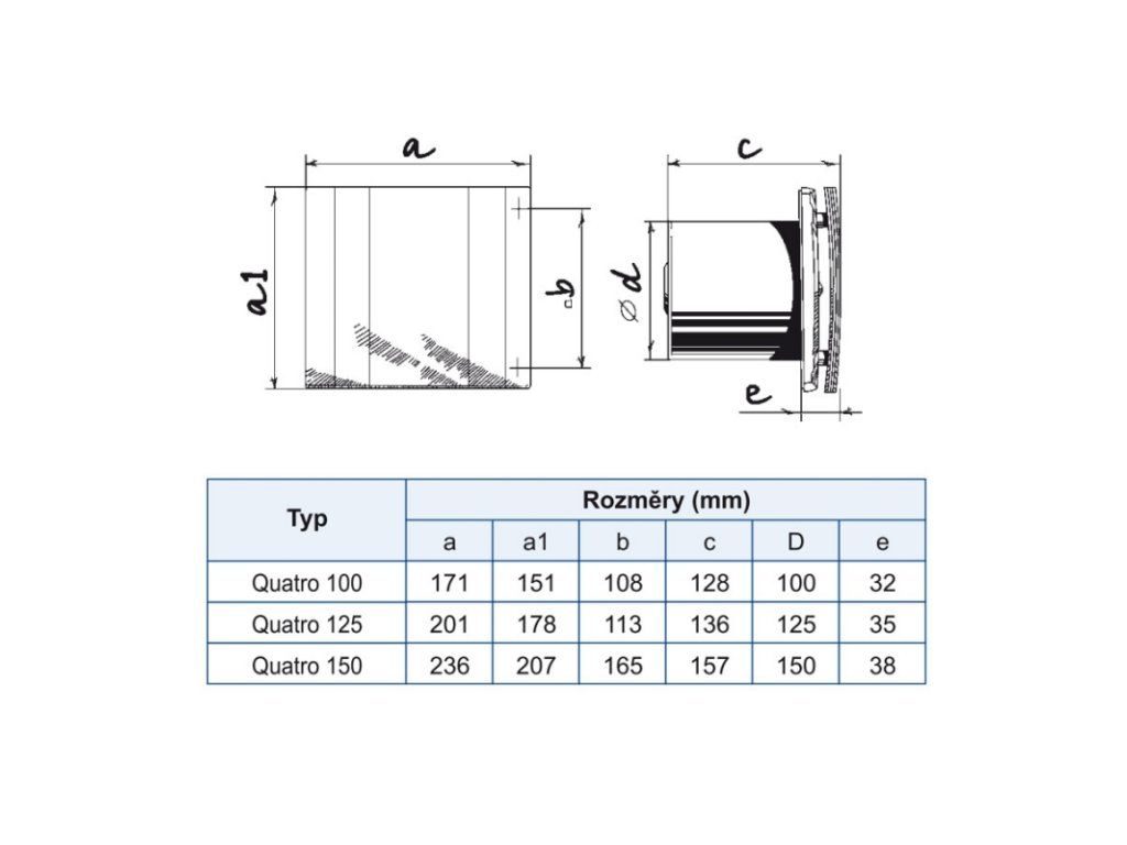 Axiální ventilátory QUATRO s moderní plnou dekorační mřížkou, pro odsávání vzduchu přímo nebo pomocí krátkého potrubí. Vhodné pro instalaci na stěnu i do stropu. Všechny tyto modely jsou vybaveny kuličkovými ložisky a zpětnou klapkou. Ventilátory BLAUBERG jsou vyráběny v souladu s evropskými standardy, normami pro nízké napětí a elektromagnetickou kompatibilitu. Jsou zařazeny do třídy spotřebičů s dvojitou izolací a stupněm ochrany IP34.