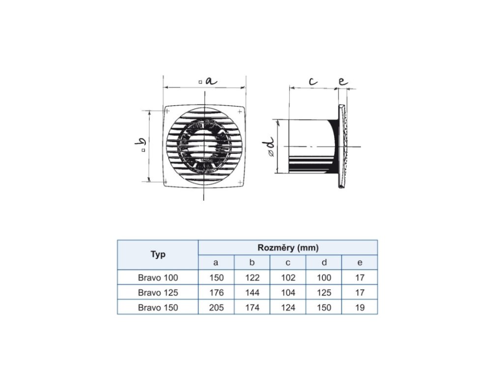 Axiální ventilátory BRAVO pro odsávání vzduchu přímo, nebo pomocí krátkého potrubí. Vhodné pro instalaci na stěnu i do stropu. Všechny tyto modely mají kuličková ložiska a zpětnou klapku. Ventilátory BLAUBERG jsou vyráběny v souladu s evropskými standardy, normami pro nízké napětí a elektromagnetickou kompatibilitu. Jsou zařazeny do třídy spotřebičů s dvojitou izolací a stupněm ochrany IP 34.