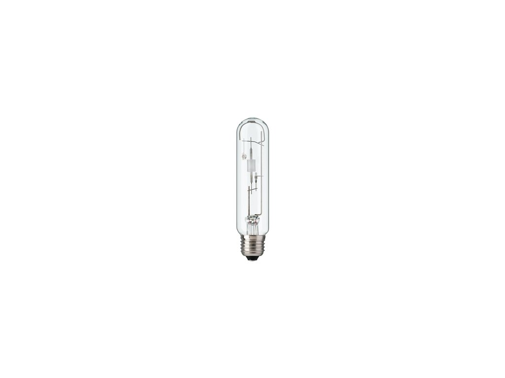 Halogenidová výbojka s keramickým hořákem a čirou tubulární vnější baňkou, použitelná v exteriérech a poskytující příjemné bílé světlo
