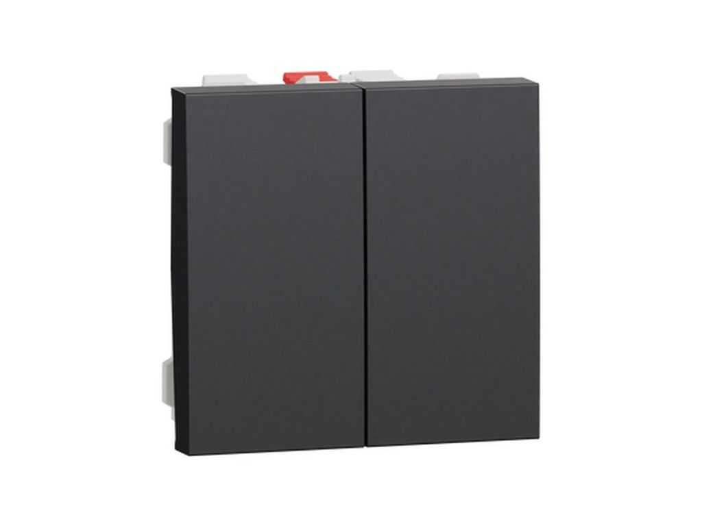 Antracitový vypínač č. 6+6 Nová Unica se dvěma klapkami je spolehlivý spínací mechanismus pro ovládání svítidel či jiných přístrojů. Nabízí snadné připojení pomocí bezšroubových svorek a příjemný design, který snadno začleníte do vašeho interiéru. Upevňuje se nacvaknutím do montážního rámečku Zamak.