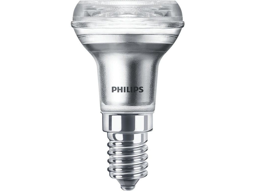 LED žárovka Philips CorePro s paticí E14 ve tvaru baňky R39 v matné variantě o příkonu 1,8 W, která nahrazuje klasickou 30 W žárovku, svítí úsporným teplým bílým světlem 2700 K rozptýleným v úhlu 36°. Její světelný tok je 150 lm.