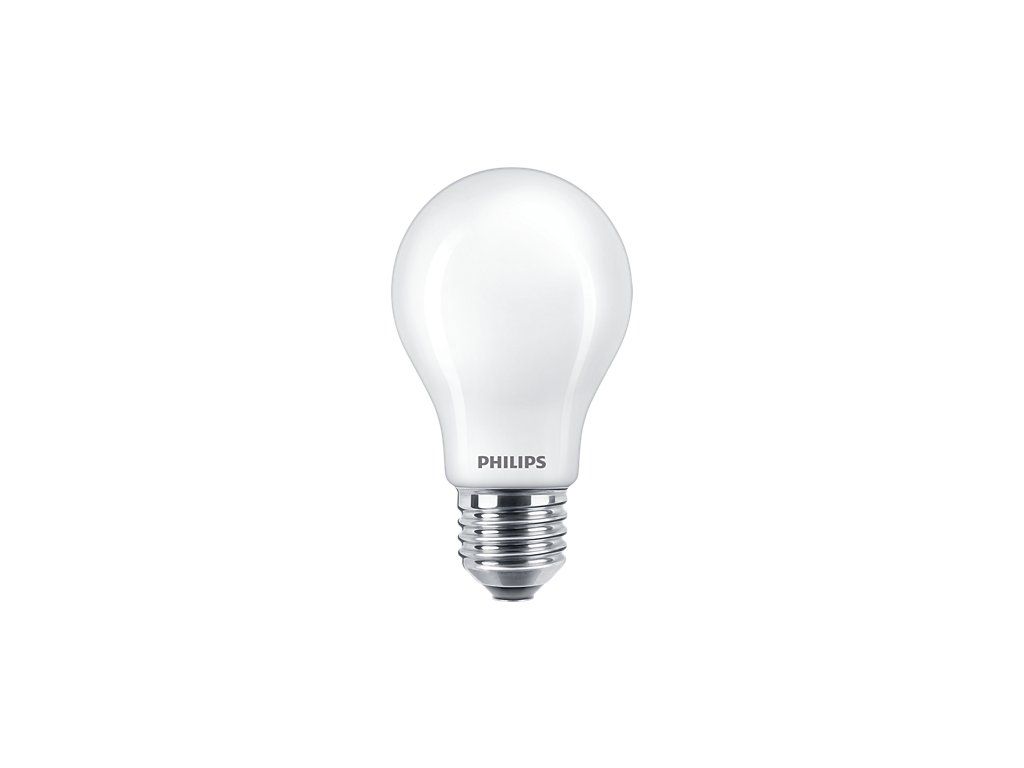LED žárovka Philips CRI90 s paticí E27 v tradičním tvaru baňky A60 v matné bílé variantě FR o příkonu 12 W, která nahrazuje klasickou 100 W žárovku, svítí stmívatelným úsporným teplým bílým světlem 2700 K se silným světelným tokem 1521 lm.