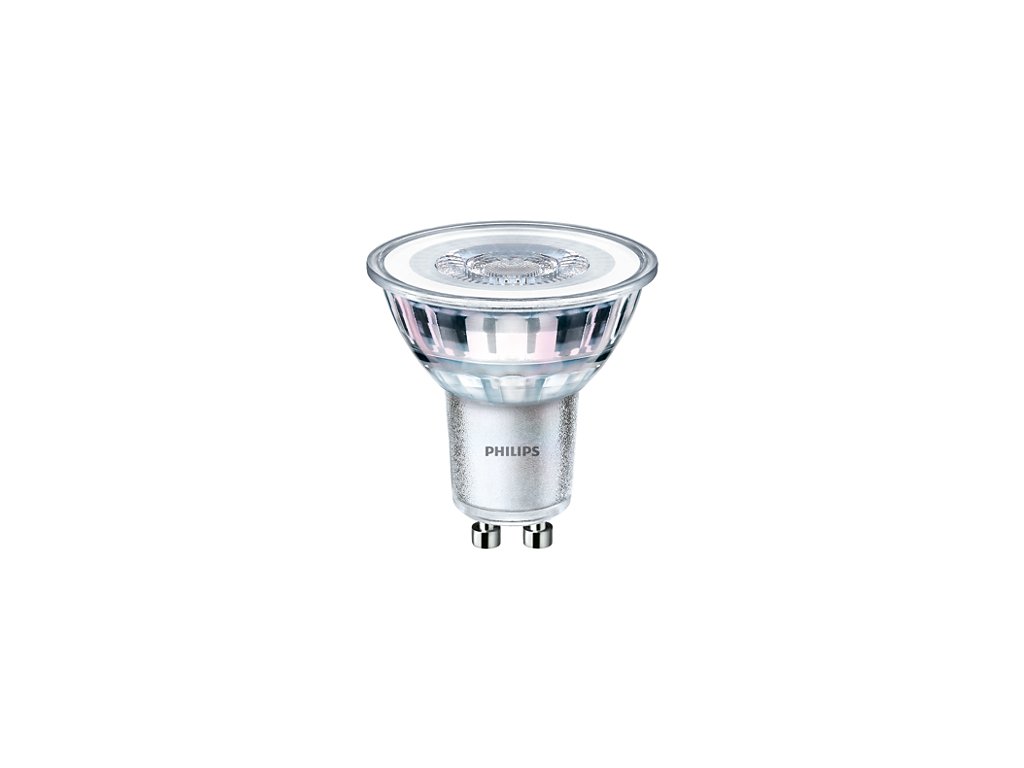 Bodová LED žárovka Philips CorePro LEDspot je určena pro bodová svítidla s paticí GU10. Její příkon je 4,6 W, má svítivost 370 lm v úhlu svitu 36°. Odpovídá svitu 50 W halogenové žárovky. Svítí nestmívatelným teplým bílým světlem 3000 K.