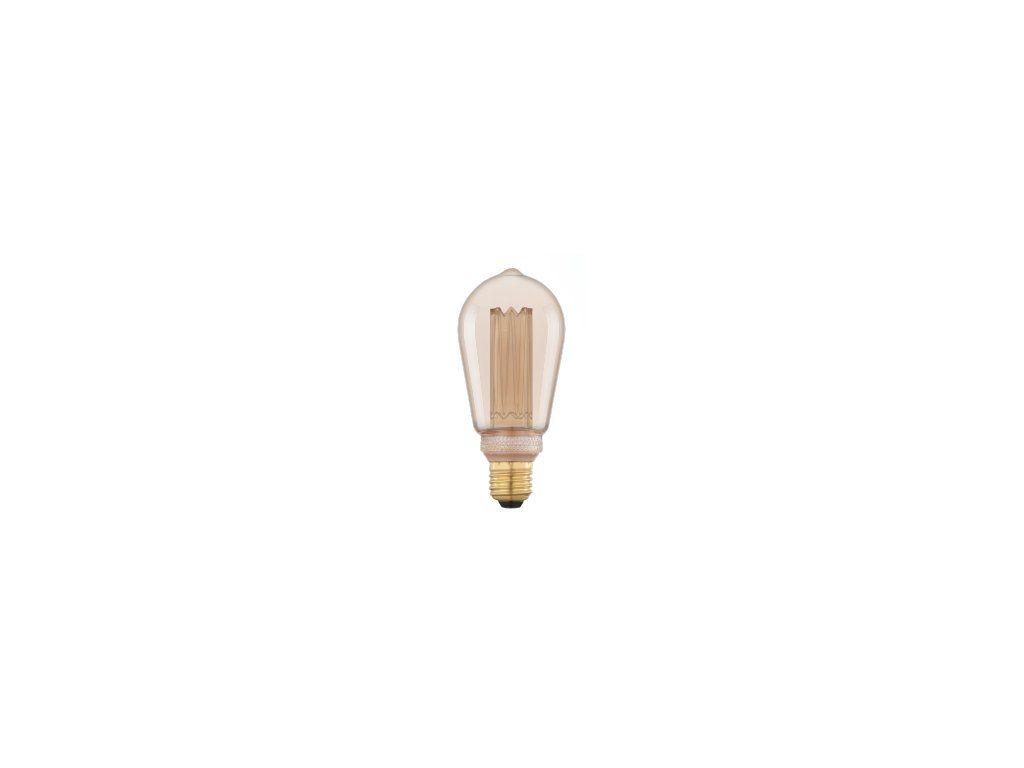 LED žárovka vintage filament GOLD s paticí E27 se skleněnou baňkou tvaru ST64 v jantarové barvě o příkonu 4W, žárovku, svítí příjemně rozptýleným úsporným teplým světlem 1800 K se světelným tokem 170 lm.