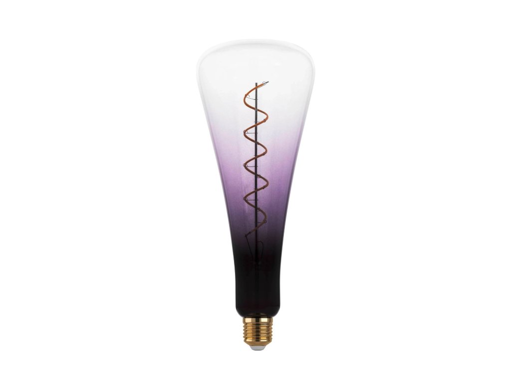 Nadrozměrná LED dekorativní žárovka E27 (velká velikost) je vyrobena z napařovaného skla s atmosférickým barevným přechodem ve fialové a černé barvě. Spirálové LED diody dokonale završují expresivní design svítidla. LED žárovka (T110) poskytuje příjemné teplé bílé světlo a je stmívatelná (v závislosti na vlastnostech stmívání vaší lampy). Díky svému extra velkému a speciálnímu tvaru je ideální jako samostatná dekorativní lampa a upoutá pozornost v každém obytném prostoru.