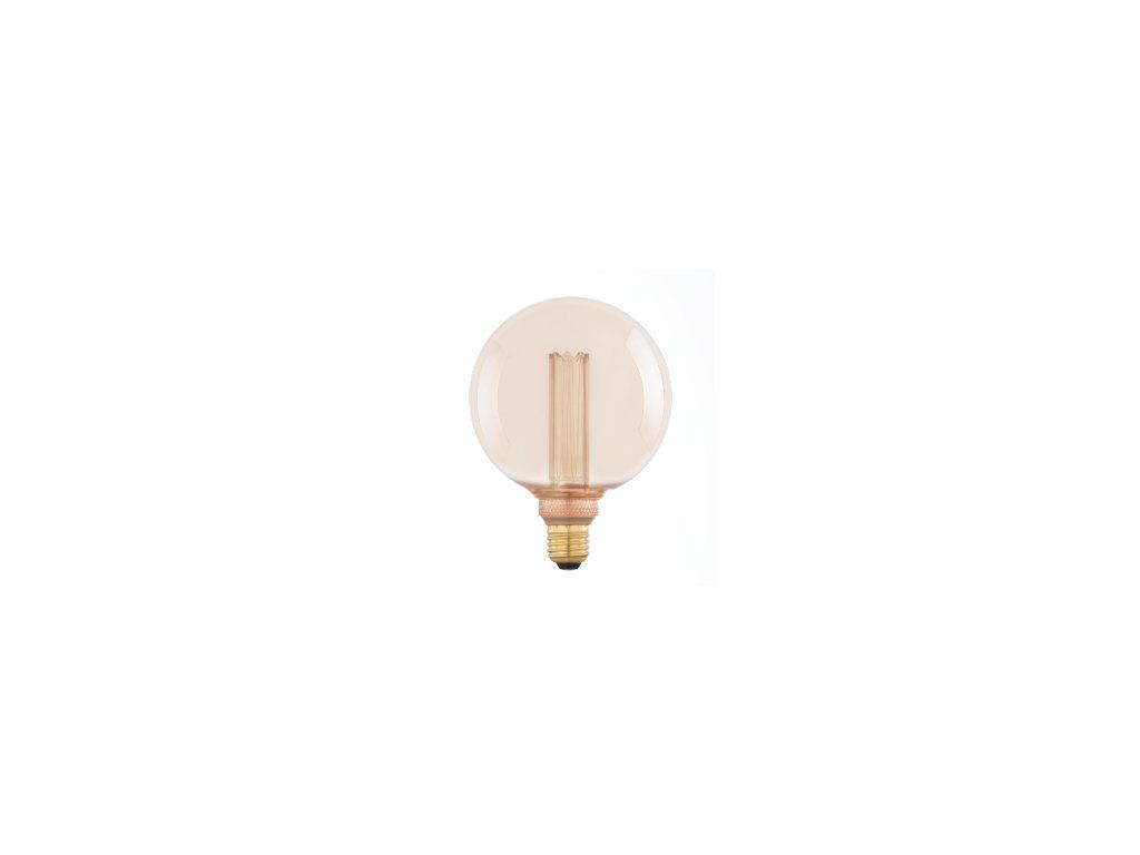 LED žárovka vintage filament GOLD s paticí E27 se skleněnou baňkou tvaru G125 v jantarové barvě o příkonu 4W, žárovku, svítí příjemně rozptýleným úsporným teplým světlem 1800 K se světelným tokem 170 lm.