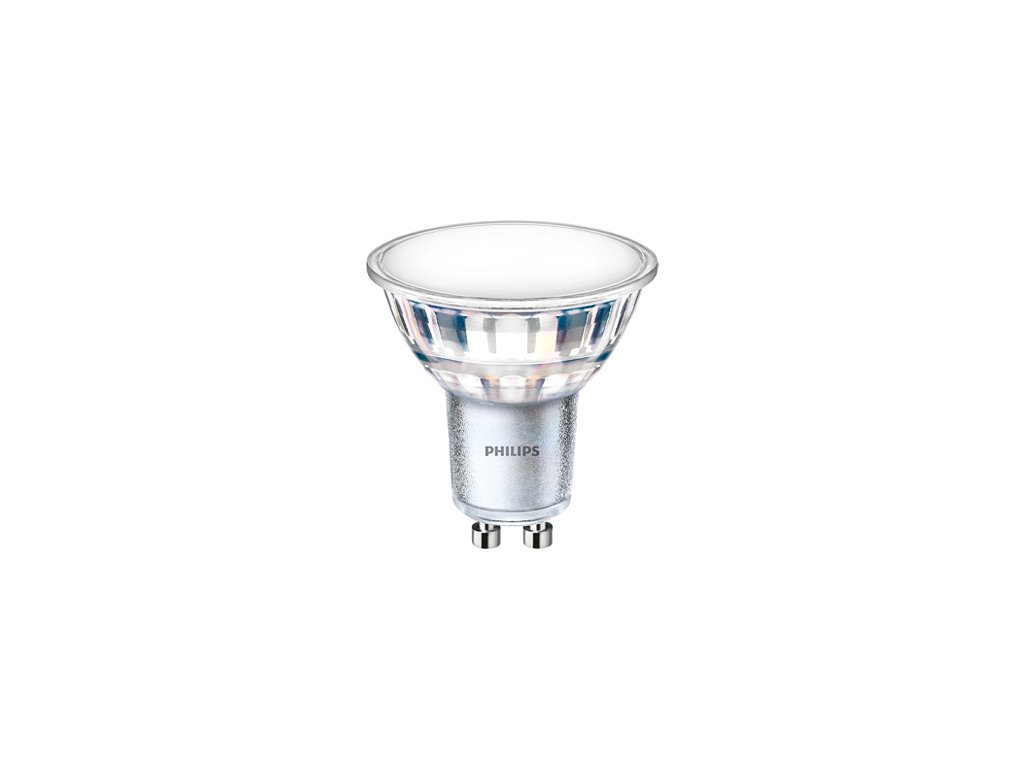 Bodová LED žárovka Philips CorePro LEDspot je určena pro bodová svítidla s paticí GU10. Má příkon 4,9 W, silnou svítivost 550 lm a vydává jasné neutrální denní bílé světlo 4000 K v širokém úhlu svitu 120°, které nahrazuje 50 W halogenovou žárovku.