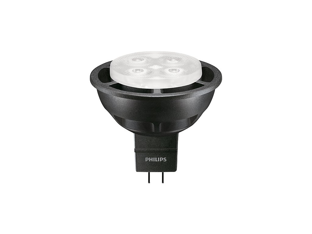 Bodová LED žárovka Philips MASTER spotLV je určena pro bodová svítidla s paticí MR16. Její příkon je 6,3 W, má svítivost 395 lm v úhlu svitu 36°. Odpovídá svitu 35 W halogenové žárovky. Svítí teplým bílým světlem 3000 K.