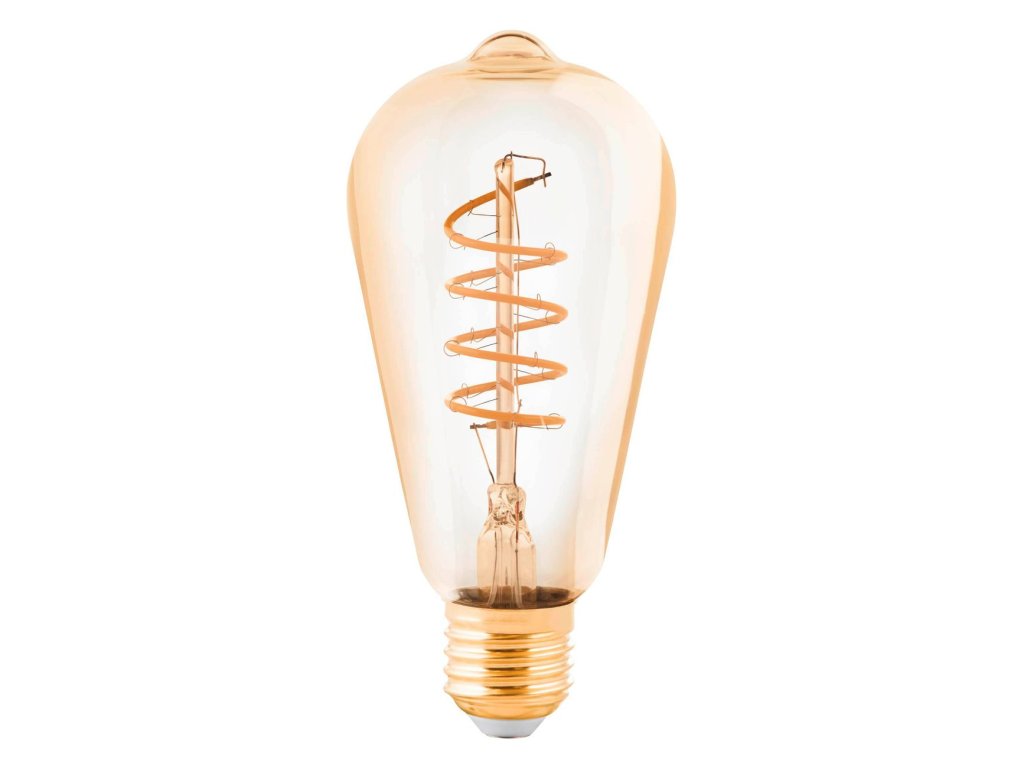 Dekorativní LED žárovka EGLO s paticí E27 ve tvaru baňky ST64 v jantarové variantě o příkonu 4 W, svítí velmi teplým bílým světlem 2000 K.