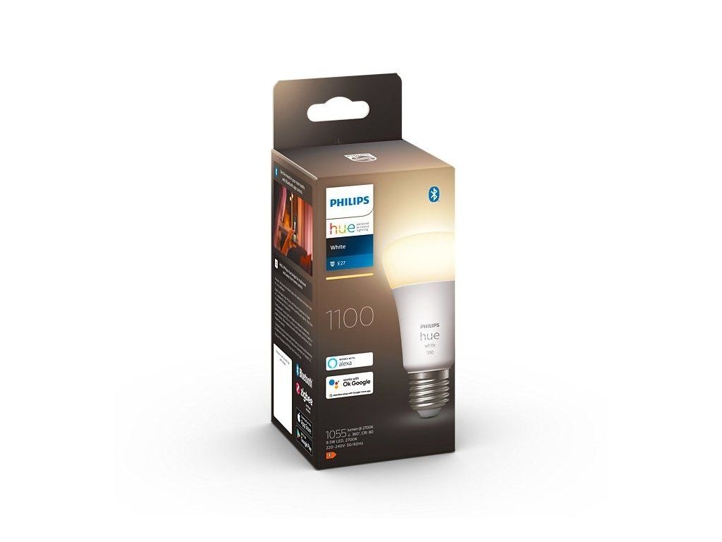 Stmívatelná smart LED žárovka Hue White s paticí E27 a tvarem baňky A19 je určena pro svítidla, které máte doma. Má příjemné teplé bílé světlo s teplotou chromatičnosti 2700K, které lze snadno stmívat hlasem připojením přes Bluetooth nebo pomocí můstku Philips Hue Bridge (není součástí balení) přes mobilní aplikaci ve vašem chytrém telefonu. Budete tak moci snadno ovládat i tuto žárovku odkudkoli a upravovat intenzitu jejího svitu podle vašich aktuálních potřeb a nálady. Stmívání, vypnutí a zapnutí této žárovky lze pouze pomocí mobilní aplikace nebo příslušenstvím Philips Hue.Doplňkové parametry