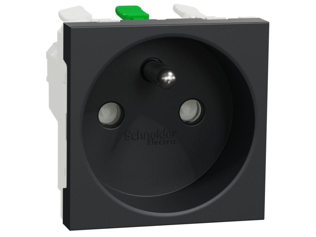 Antracitová zásuvka Schneider Electric Nová Unica nabízí snadné připojení pomocí bezšroubových svorek, stupeň ochrany IP40 a nekomplikovaný, příjemný design, který snadno začleníte do vašeho interiéru.
