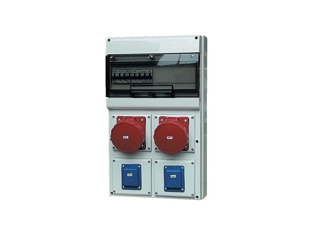 Zásuvková rozvodnice s chráničem řady 632 4x zásuvka - zás.: 1x32A/5p, 1x16A/5p, 2x230V, jištění: 1x C25/3, 1xC16/3, 1xB16/1 + FI-40ADoplňkové parametry