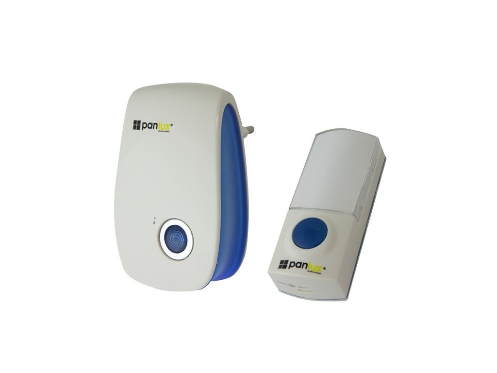 Bezdrátový zvonek PANLUX s možností 32 různých melodií. Tlačítko IP44 - 12V baterie je součástí balení. Dosah 100m ve volném prostoru.