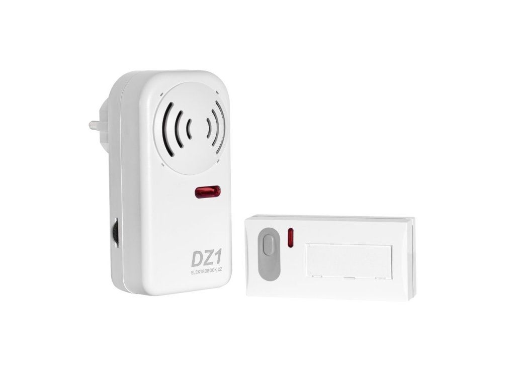 Bezdrátový domovní zvonek DZ1-1 Elektrobock se skládá z tlačítka na baterii 12V a přijímače do zásuvky. Vysílač (tlačítko) má frekvenci 433,92 MHz a stupeň krytí IP65,lze jej umístit do teplot od -20°C až po + 50°C. Přijímač na frekvenci 50 Hz vydává zvuk o hlasitosti 80 dB.Doplňkové parametry